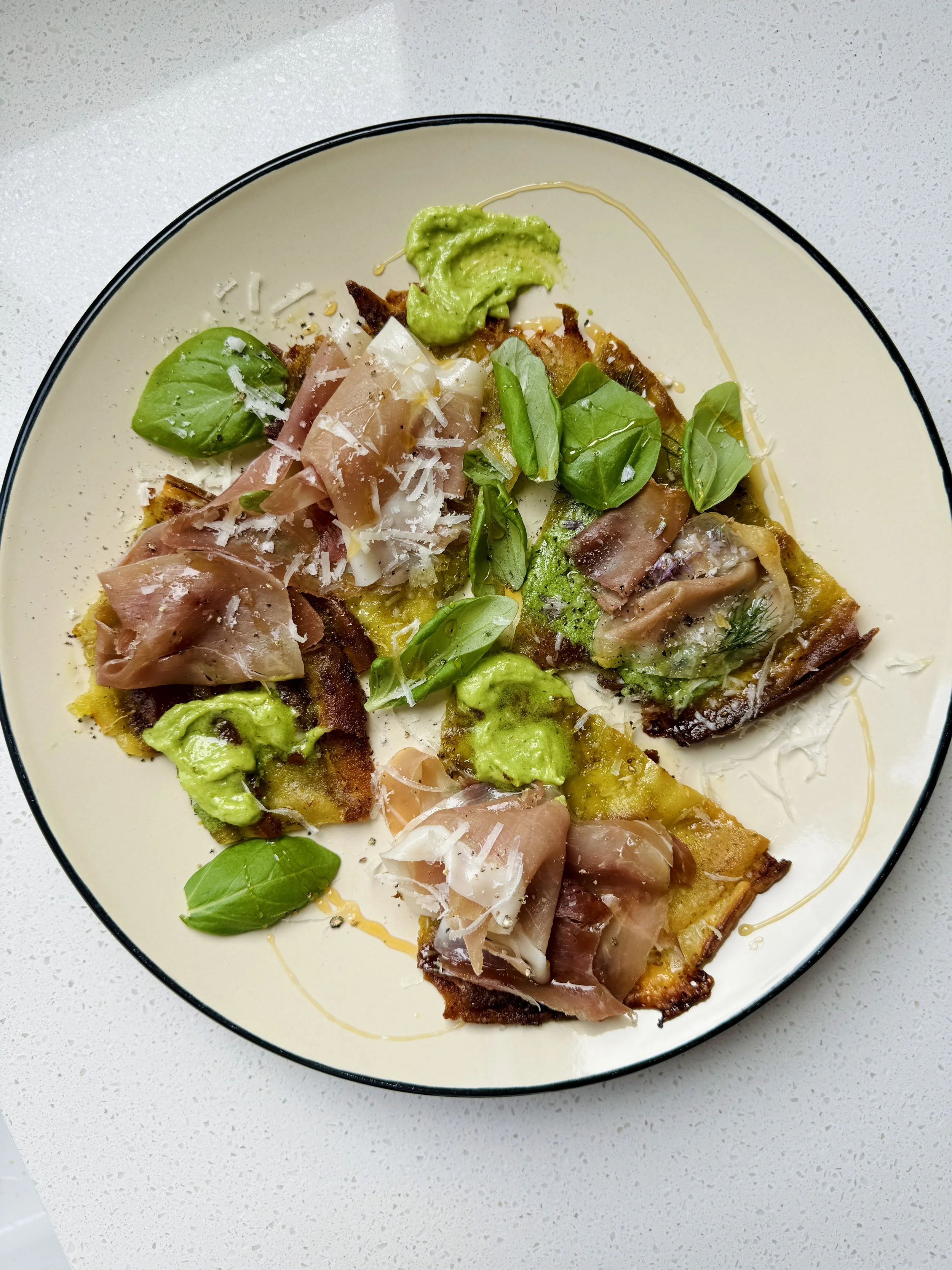 With Basil & Prosciutto.