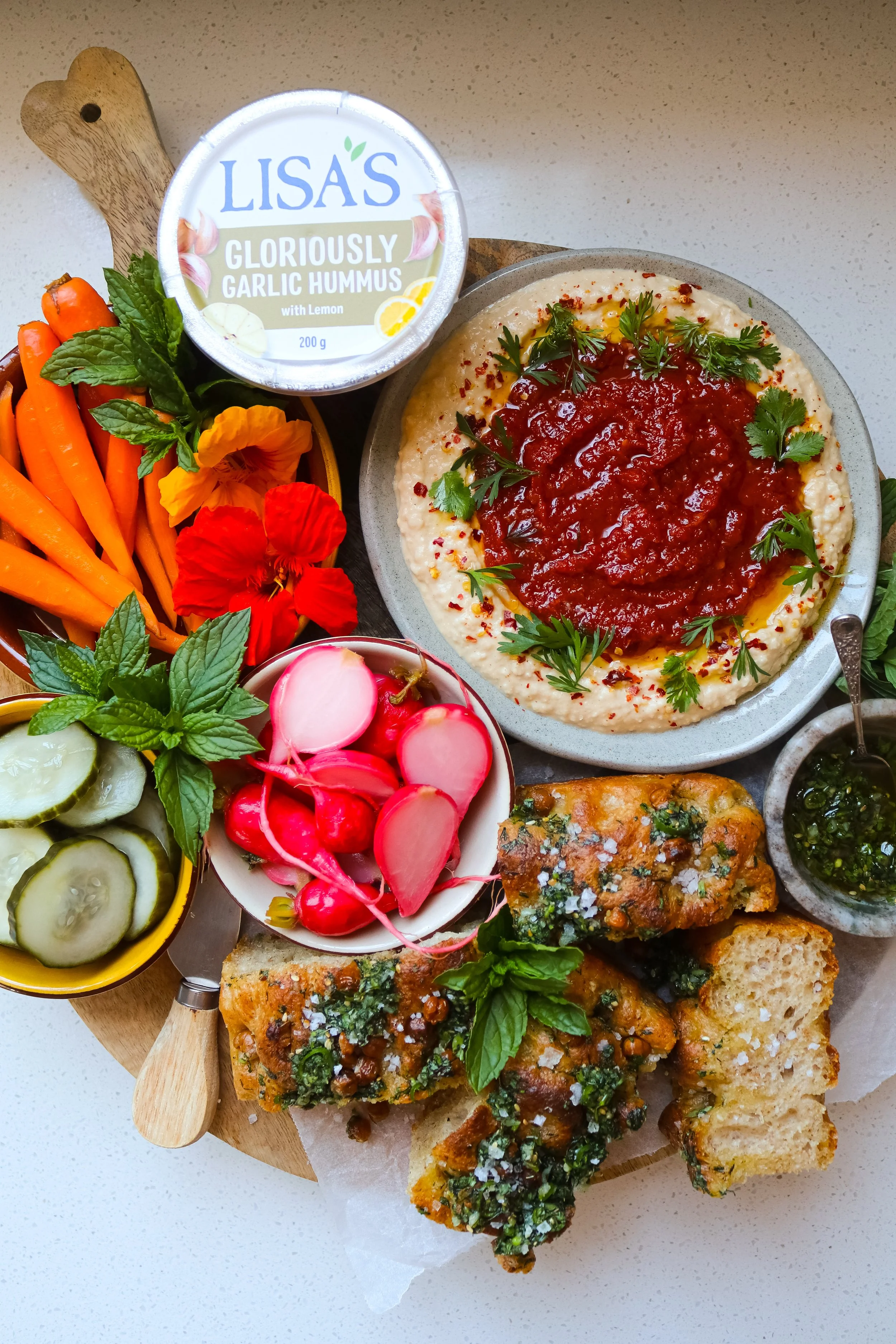 1x 200g tub Lisa’s gloriously garlic hummus
