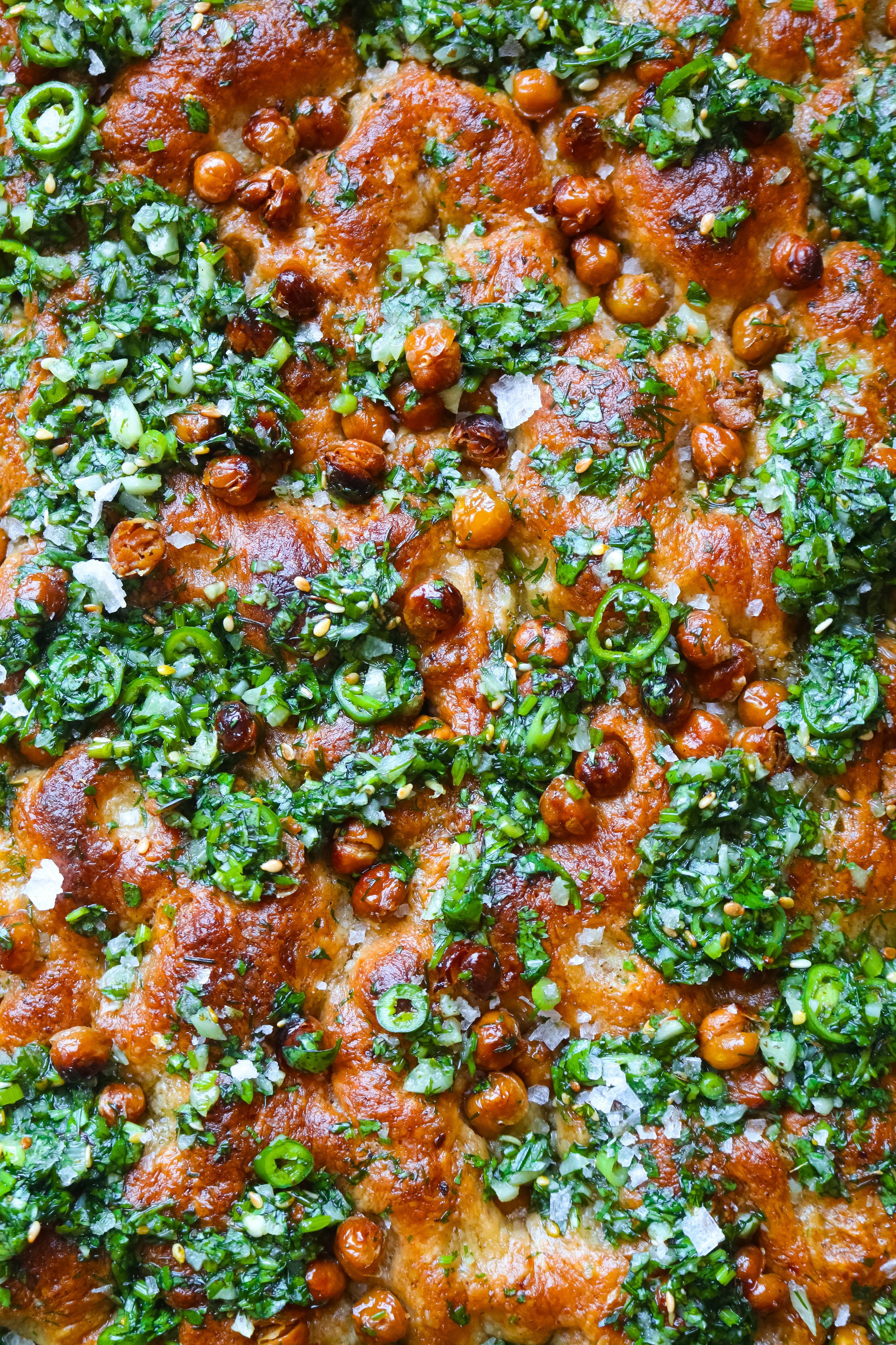Extra Fluffy Hummus Focaccia with Garlic Herb Oil