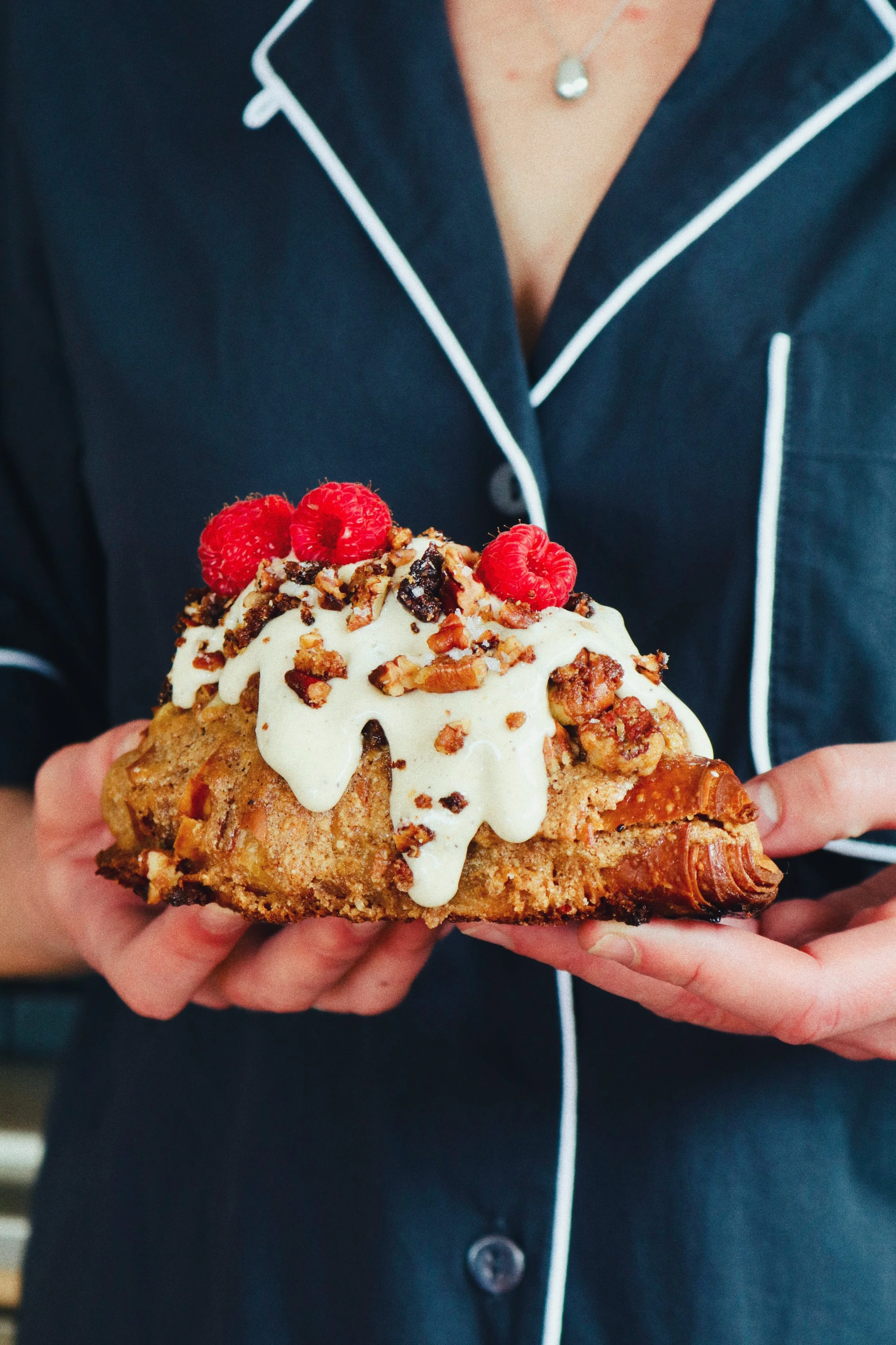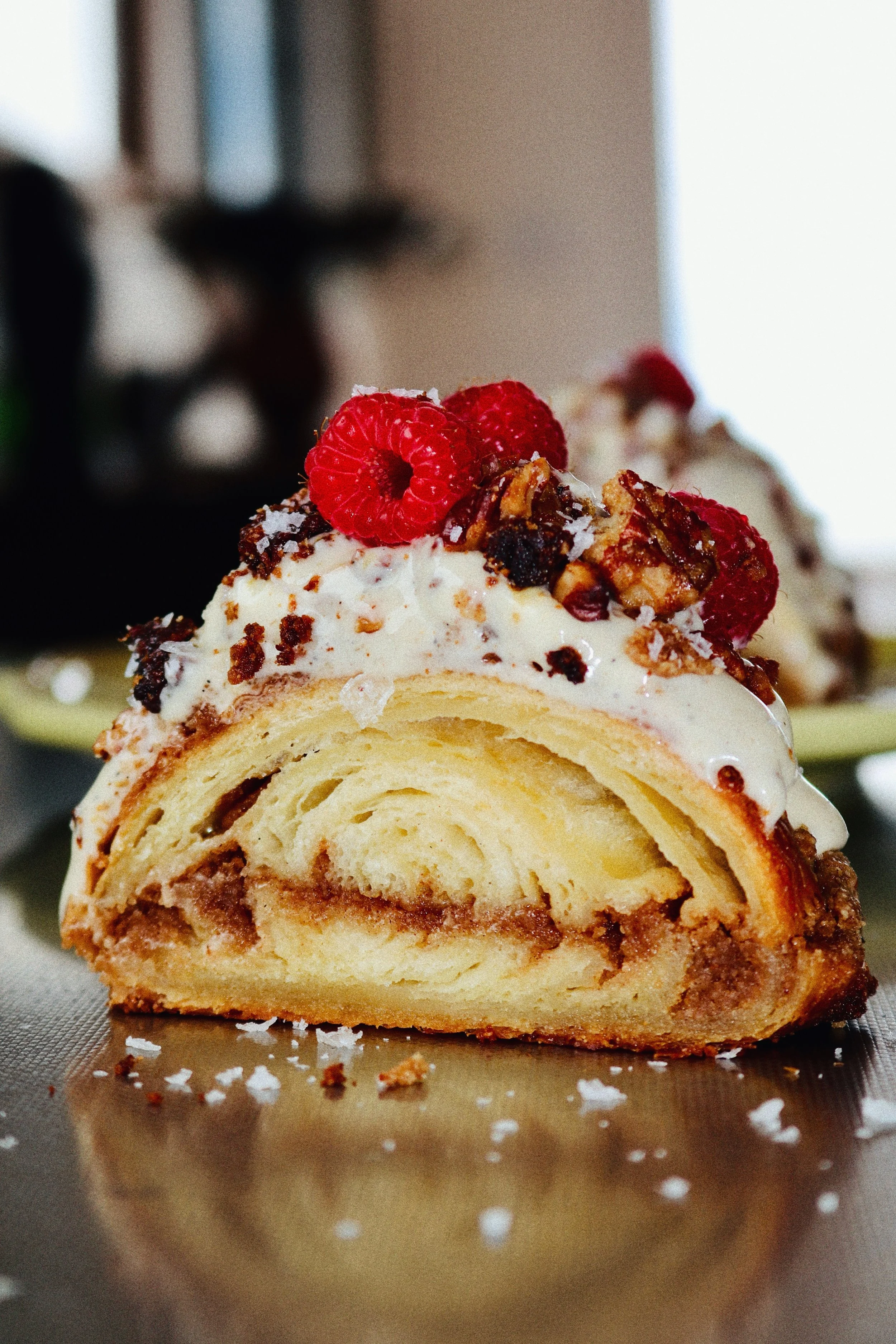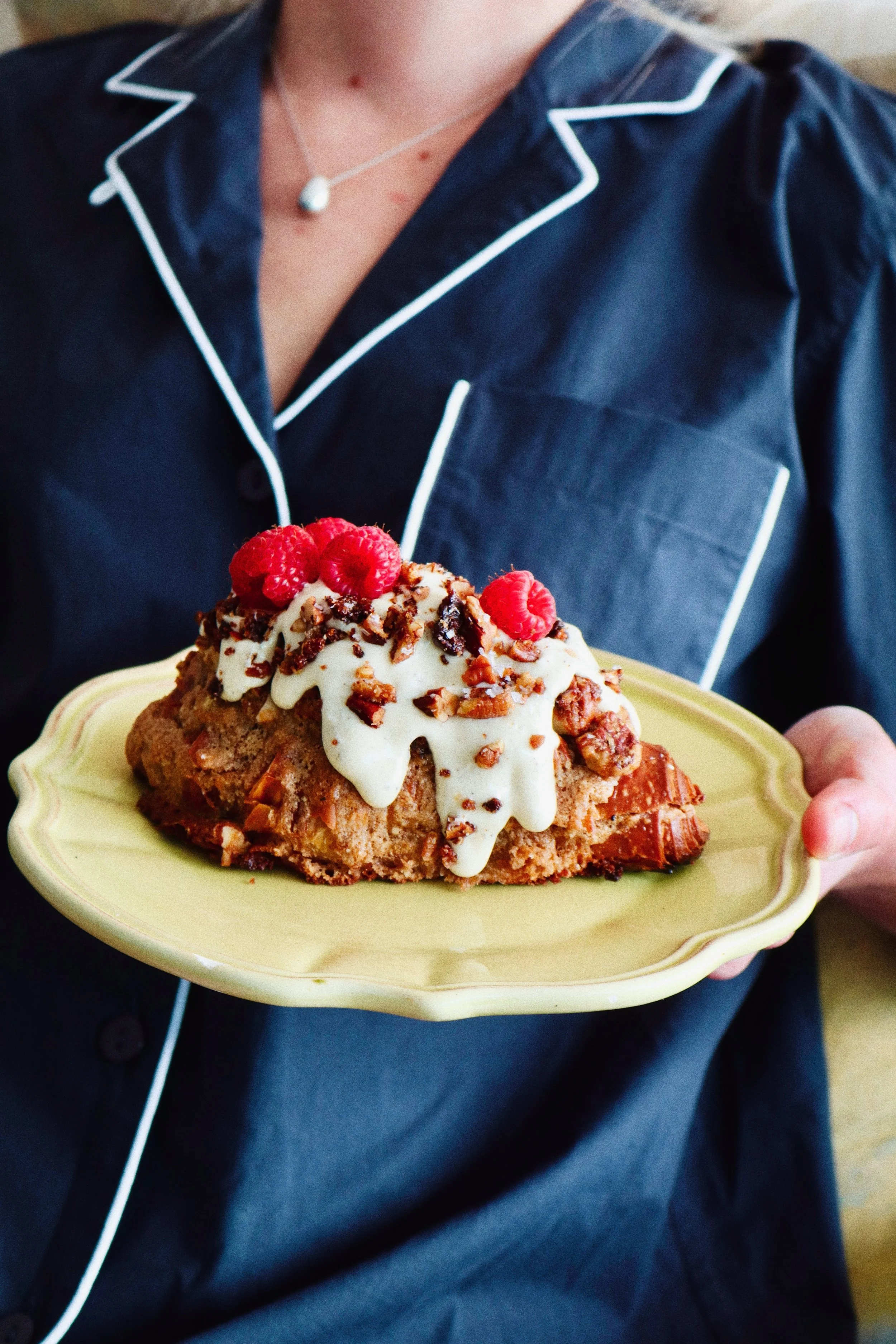 To Finish: Spoon the glaze over the cooled croissants, letting it drizzle down the sides. Sprinkle over any crispy bits saved from the baking tray, if any.